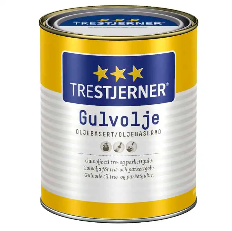 TreStjerner Gulvolje benyttes både til vedlikeholdsolje på tidligere oljede gulv og på nye eller nedslipte gulv. Kan og benyttes på lutbehandlet tre.