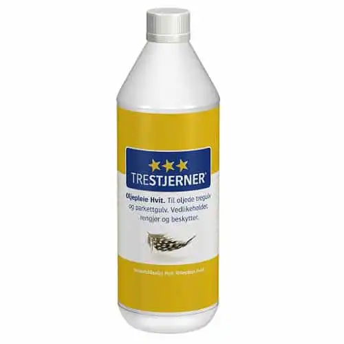 TreStjerner Hvit Oljepleie fra Scanox, anbefales til regelmessig rengjøring av oljebehandlede tre- og parkettgulv. Produktet er også velegnet til metning og rengjøring av klinker og fliser. Oljepleie vedlikeholder, rengjør og beskytter.