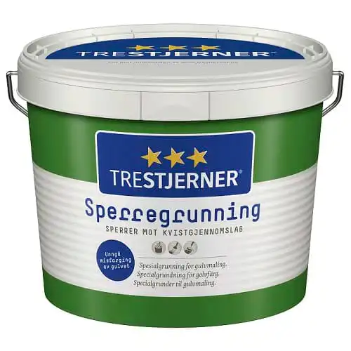 TreStjerner Sperregrunning for gulv sperrer mot gjennomslag fra kvister, gulnet underlag og fargestoffer som f.eks Garvesyre i treverket.