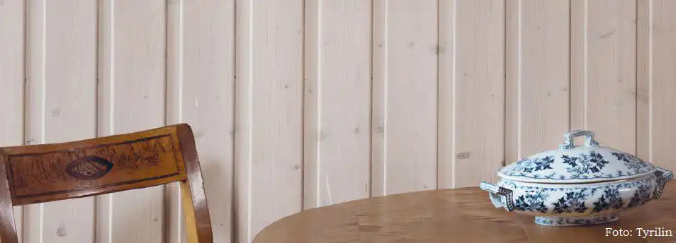 Tyrilin Panelhvit – gir en hvitere farge enn panellysner, uten at fargen skuler alt liv i treverket