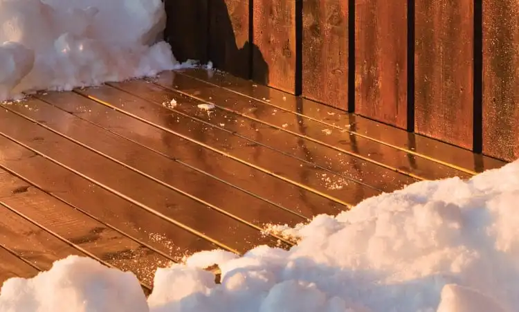 Tidligere behandlet impregnert terrassegulv og ubehandlede slitte flater