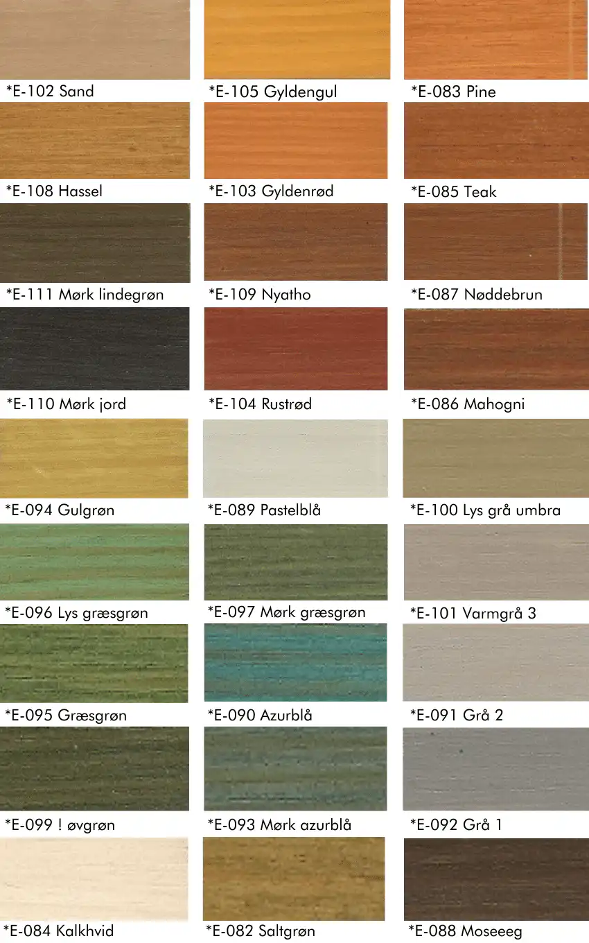 Fargevalg til oljebeis, beis og transparente behandlinger: